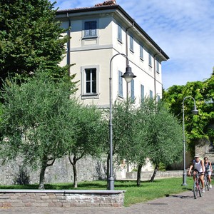 Il compatto volume di Villa Sirtori si eleva in prossimità della passeggiata a lago. Nata attorno a una torre appartenuta alla famiglia dei feudatari d'Adda, la dimora fu radicalmente rinnovata a partire dal Seicento. All'esterno conserva la bella serliana che segna la zona di ingresso; all'interno vaste sale si affiancano al piccolo oratorio secentesco, perfettamente conservato. Pervenuto nell'Ottocento a enti benefici, fu in seguito acquistato dalla famiglia degli imprenditori serici Crippa. Oggi appartiene al Comune che utilizza la villa per mostre e sede della locale biblioteca.