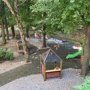 Un parco, un'area giochi per bambine e bambini, un bar, un luogo aperto e libero.