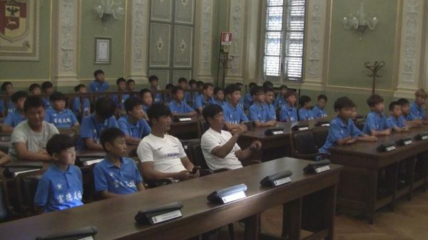 50 bambini cinesi dello Yanbian F.C. in via Tasso