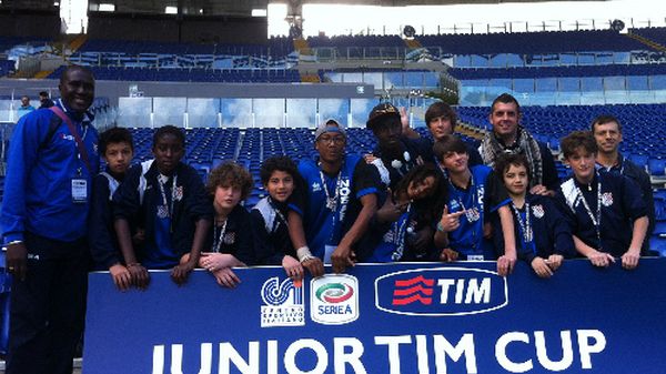 I ragazzi della Us Nosari di Bergamo allo Stadio Olimpico