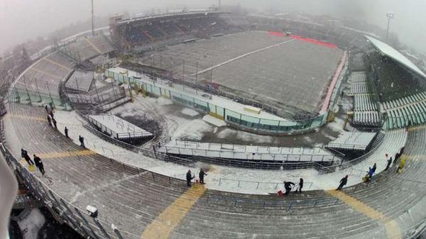 Le operazioni di pulizia degli spalti dello stadio