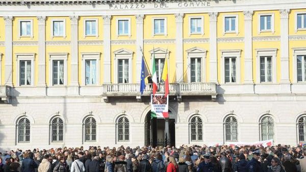 Il presidio dei docenti davanti a Palazzo Frizzoni