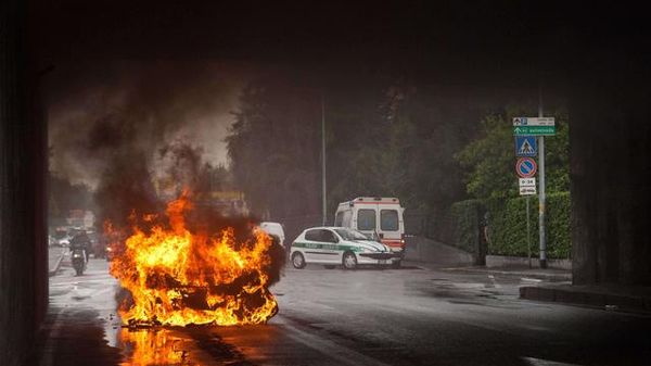 Auto in fiamme sotto il cavalcavia ferroviario di via Autostrada