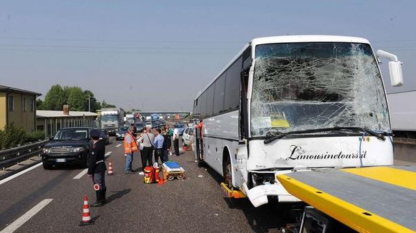 L'incidente fra pullman in autostrada