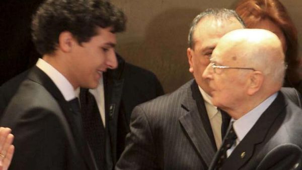L'abbraccio tra il giovane studente e il presidente Napolitano