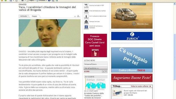 La notizia della scomparsa di Yara sui siti svizzeri