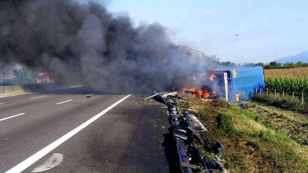 Caos in autostrada per un camion in fiamme