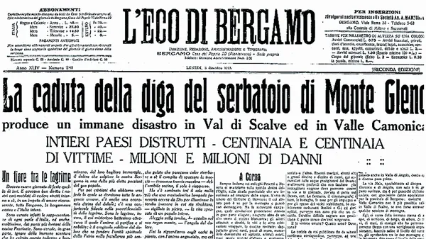 Il disastro del Gleno nelle pagine de L’Eco di Bergamo