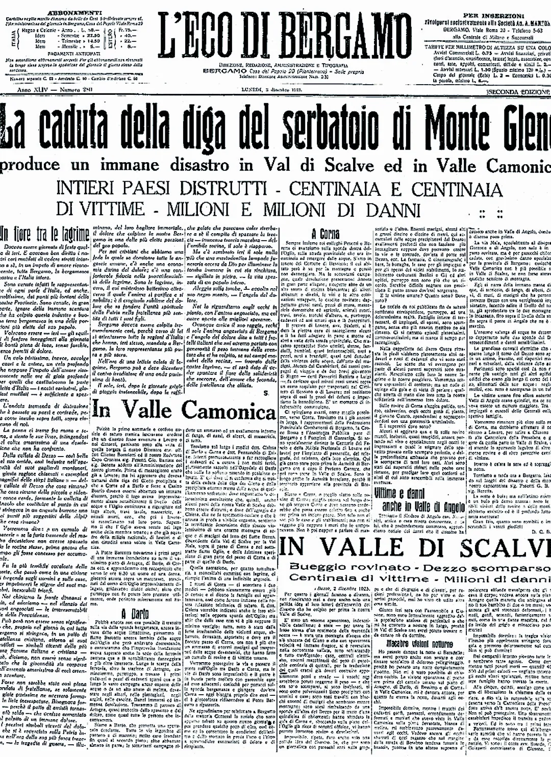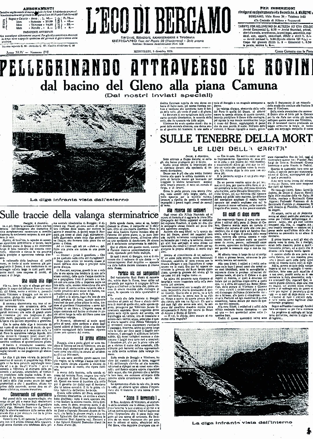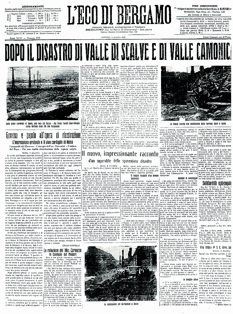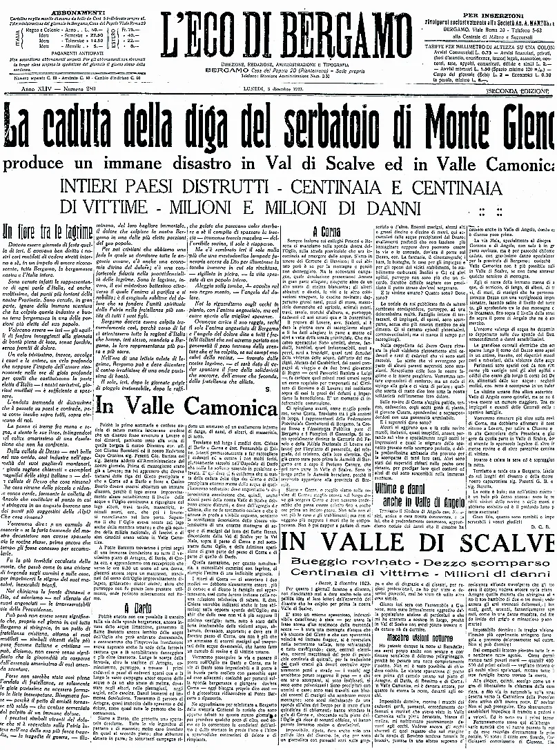Il disastro del Gleno nelle pagine de L’Eco di Bergamo