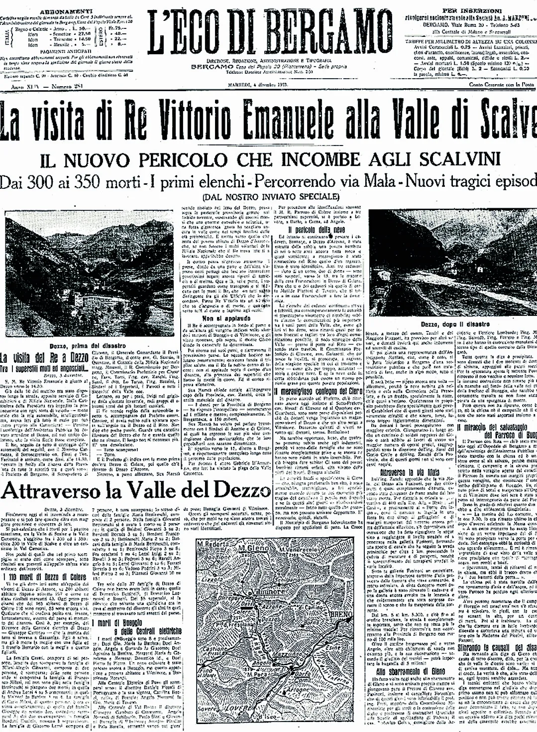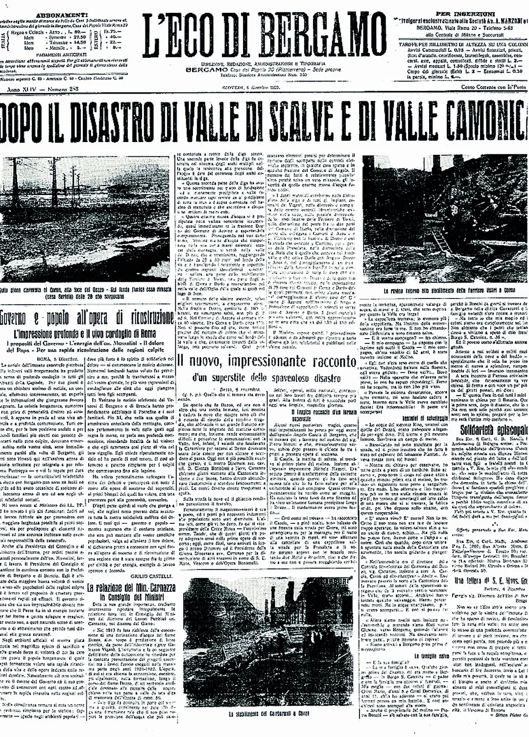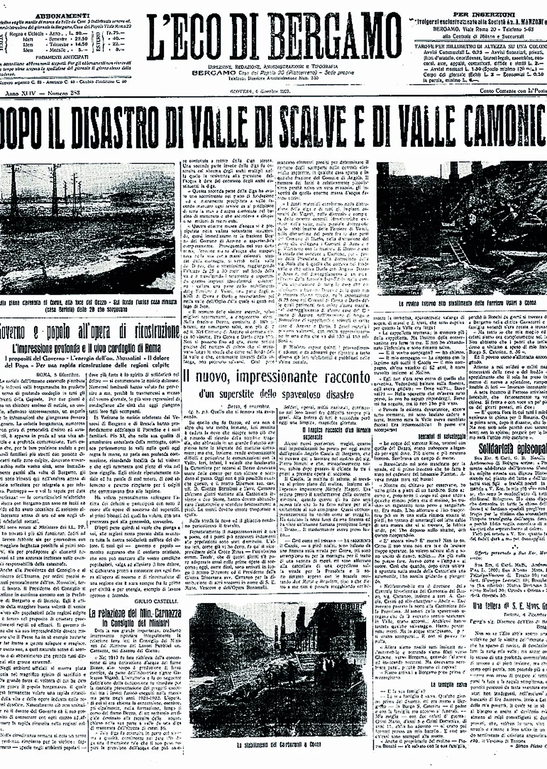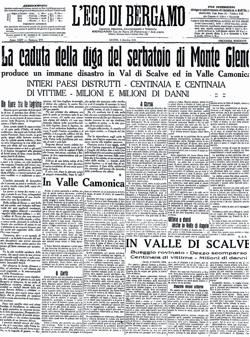 Il disastro del Gleno nelle pagine de L’Eco di Bergamo