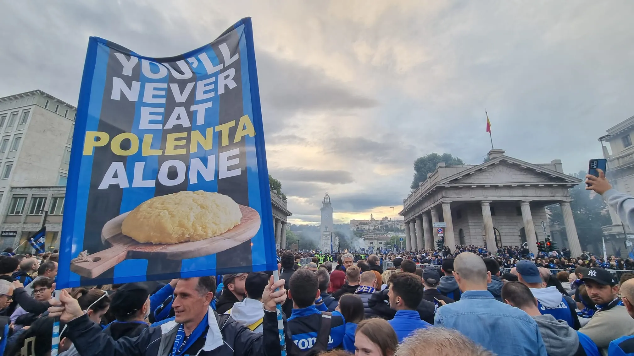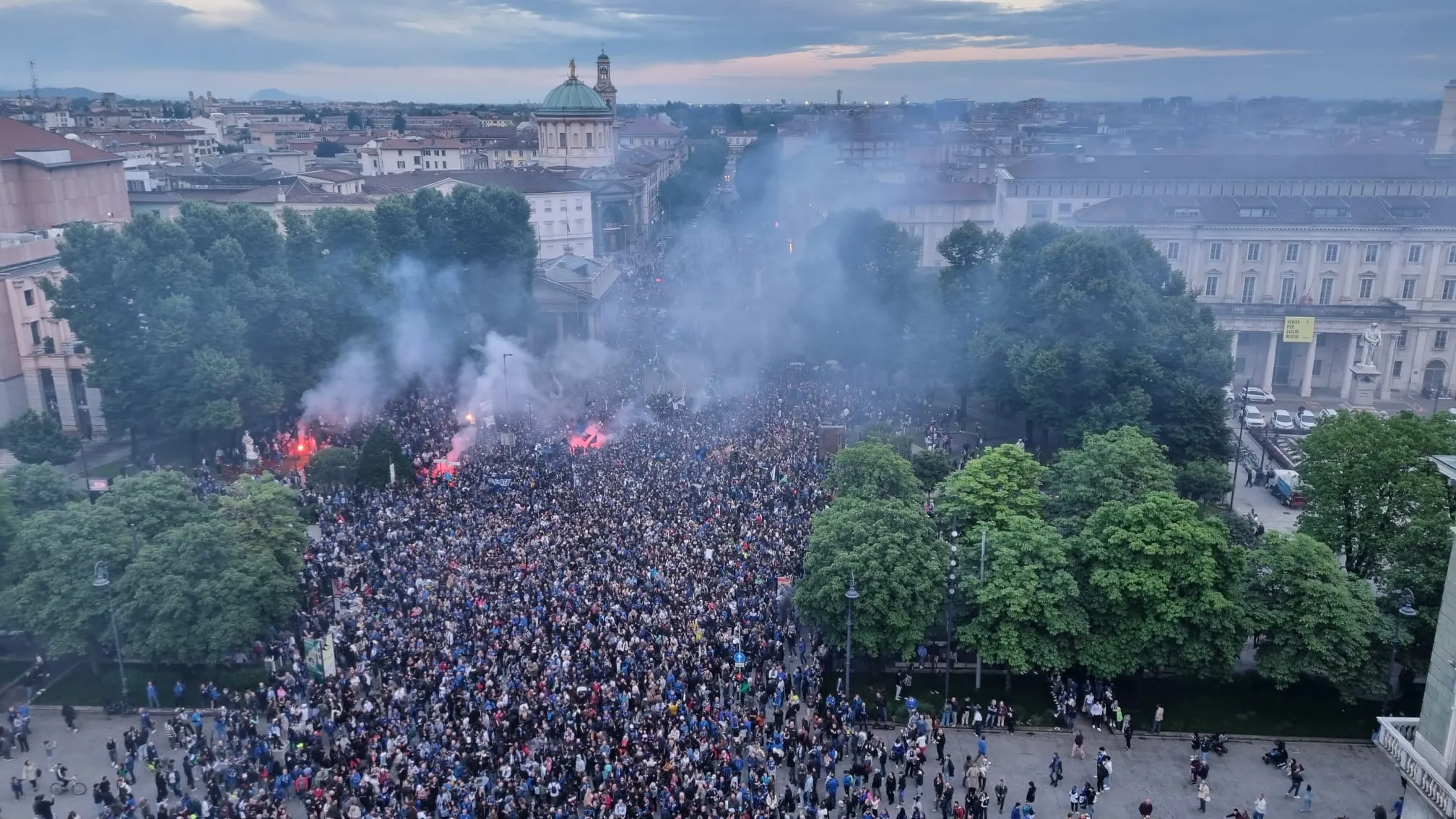 La marea di tifosi in delirio abbraccia l’autobus dell’Atalanta La folla in Porta Nuova (Foto di Beppe Bedolis) L’attesas in Porta Nuova (Foto di Beppe Bedolis)
