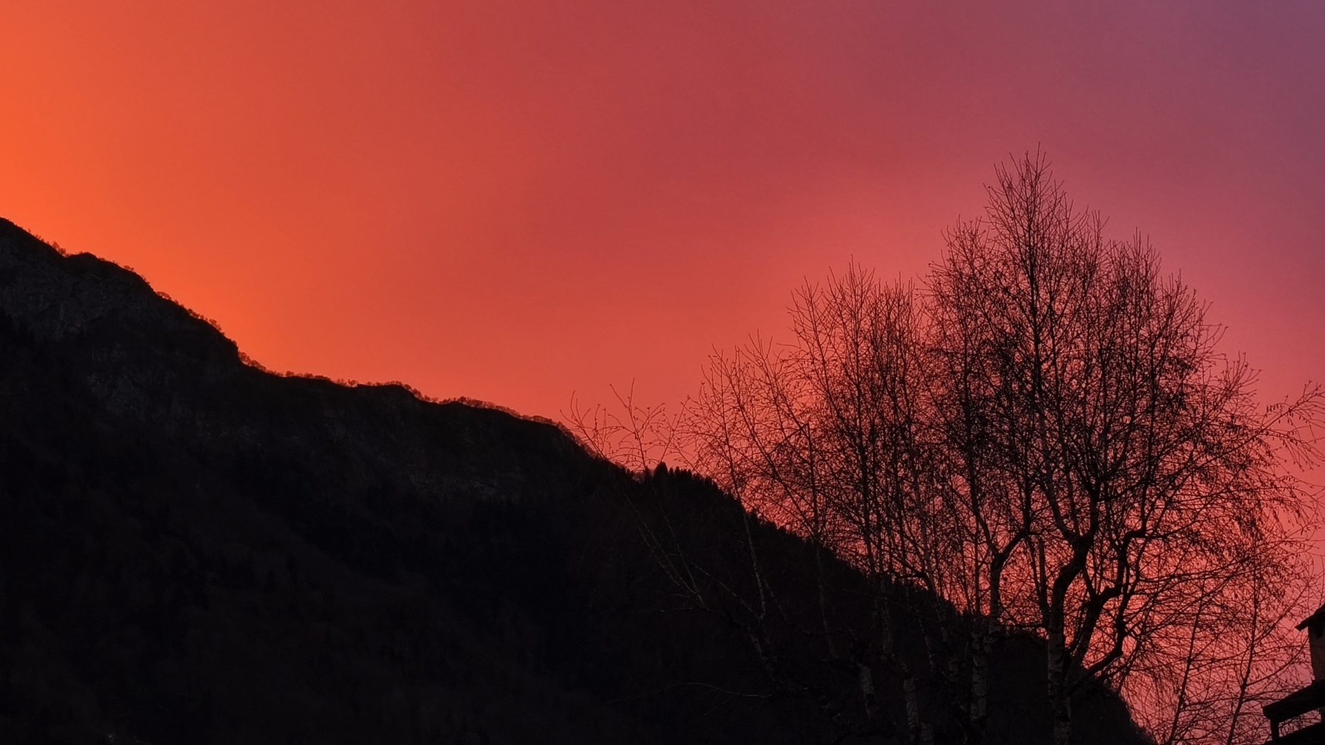 Una suggestiva alba «infuocata» ad Ardesio, la Foto del Giorno è di Tranquillo Ferri.