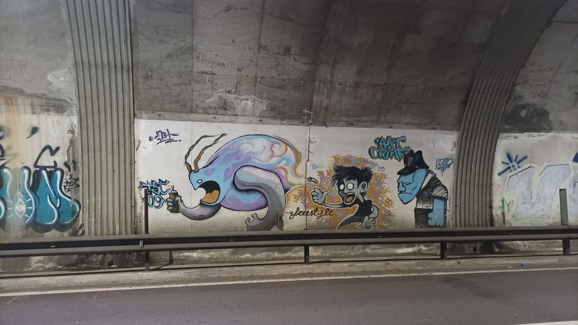 «Galleria d’arte...» Un’opera di street art vivacizza la parete di una galleria sul lago d’Iseo. La foto del giorno è di Giulia P. Autore: Giulia P.