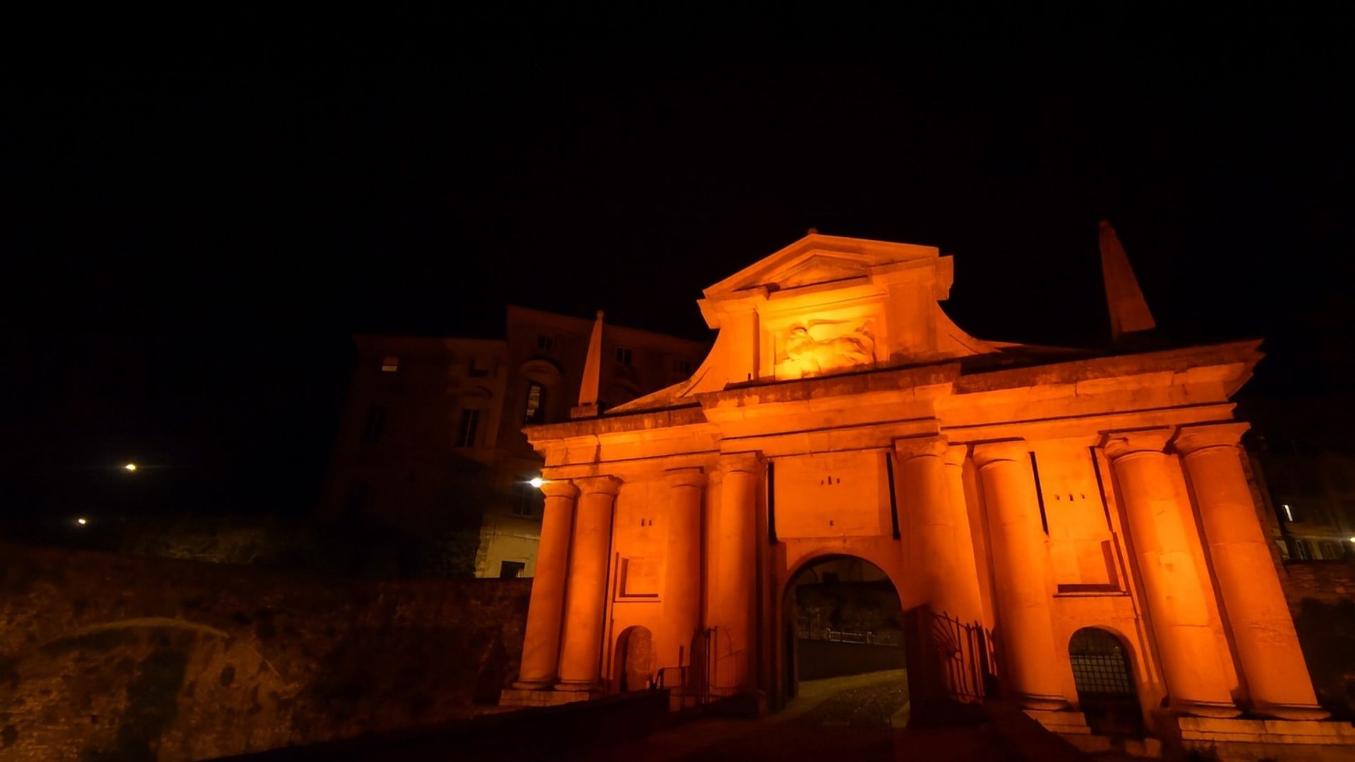 Porta San Giacomo a Bergamo si illumina d’arancione in occasione della Giornata internazionale per l’eliminazione della violenza contro le donne.