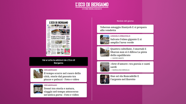 AI LETTORI. L’edizione digitale de L’Eco di Bergamo è di nuovo disponibile. Il team tecnico ha lavorato senza sosta per risolvere il problema.