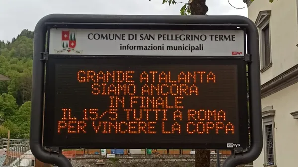 LA CURIOSITÀ. In vista della finale di Coppa Italia sugli schermi municipali rimbalza l’appello: «Il 15 maggio tutti a Roma per vincere la Coppa».