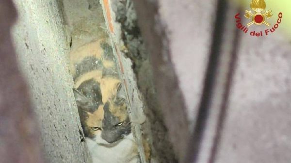 Gatto bloccato in un’intercapedine, i vigili del fuoco forano il muro e lo salvano - Foto