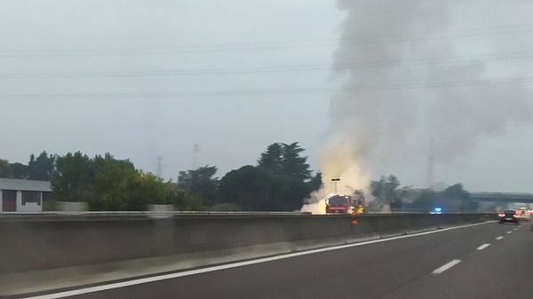 Auto prende fuoco in autostrada Vettura distrutta, code a Grumello