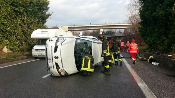 Auto ribaltata al rondò del Cassinone Coinvolti due bimbi di 3 e 5 anni