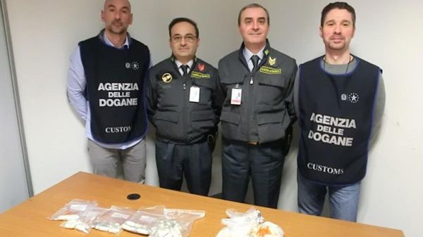 Due passeggeri portoghesi atterrati con un volo da Madrid avevano ingoiato prima della partenza 144 ovuli di droga. Scoperti con le radiografie.