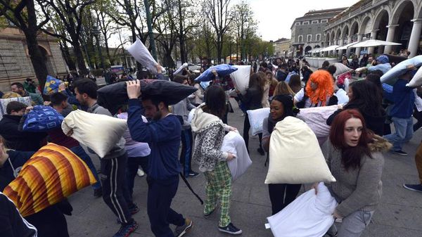 Sabato 2 aprile torna «Pillowfight Bergamo», il gioco della lotta dei cuscini. Appuntamento in piazza Dante. Tam tam su Facebook, ecco le cose da sapere per giocare. «Indossate il pigiama».