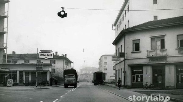 Una foto d’epoca ci porta in via Broseta, all’incrocio con via XXIV Maggio: poco traffico, un benzinaio, la farmacia sul lato opposto rispetto a oggi e un semaforo «appeso» sopra la strada. Nella foto interattiva il confronto tra ieri e oggi.