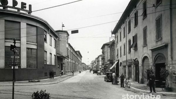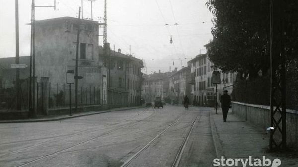Uno scatto da Storylab ci mostra Borgo Santa Caterina, a pochi metri dall’incrocio con via Suardi e via Corridoni, quando ancora passava il tram. I binari oggi non ci sono più, ma è rimasta la vecchia cabina elettrica, nascosta tra i palazzi.