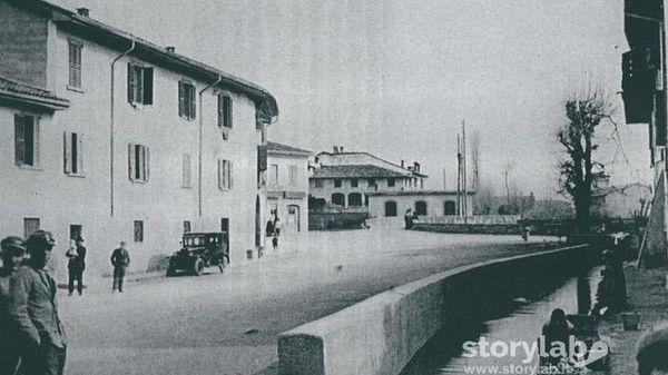 Questa foto ci mostra come era il quartiere di Campagnola ai primi del Novecento. Niente traffico e si vede ancora la vecchia roggia nella quale si lavavano i panni.