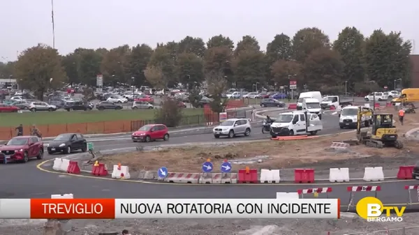 TG BergamoTV / Pianura La nuova rotatoria lungo la ex statale 11 a Treviglio, il primo giorno già teatro di un drammatico incidente 2 anni fa