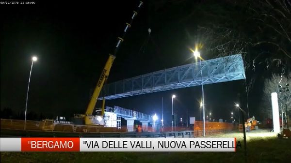 TG BergamoTV / Bergamo Città Via Delle valli, posata la nuova passerella ciclopedonale che oltrepassa la circonvallazione 2 anni fa