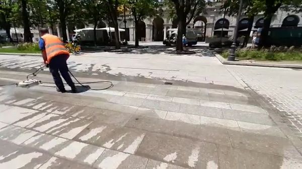 Cronaca / Bergamo Città La pulizia del Sentierone delle macchie d’olio lasciate dalle auto della MilleMiglia 3 anni fa