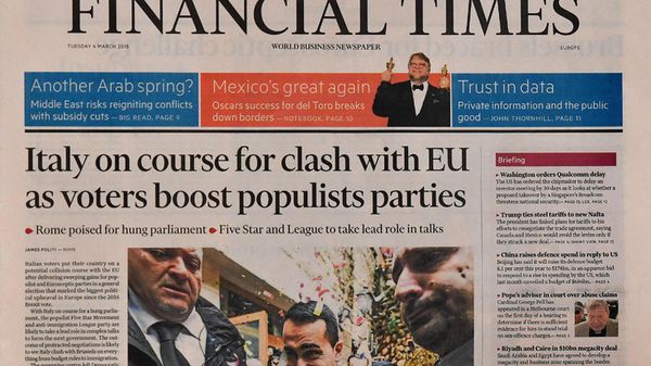 BRUXELLES - "Le elezioni parlamentari di domenica in Italia hanno dato uno schiacciante segnale sulle carenze delle classi politiche che hanno governato la nazione nell'ultimo quarto di secolo". Inizia così il commento del Financial Times a pagina 11 a firma …