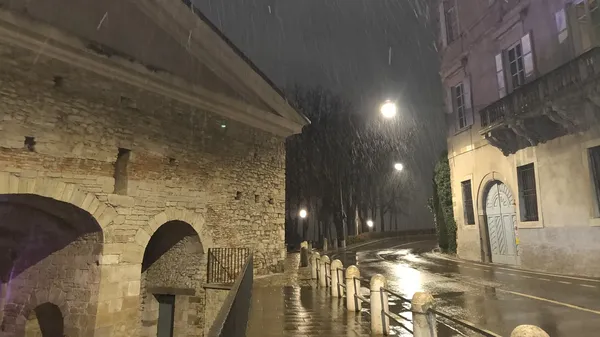 LA PERTURBAZIONE . Come preannunciato, la perturbazione ha portato una spolverata di neve sulle Orobie e qualche fiocco che non ha attaccato anche in Città Alta.