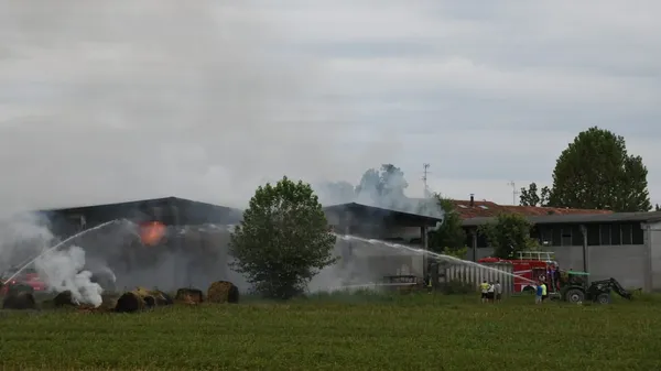 L’INCENDIO. In via Brignano a Treviglio, in corso le operazioni di spegnimento.