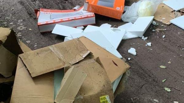 Un mucchio di imballaggi e sacchi di plastica sono stati trovati lungo una strada sterrata di Madone.