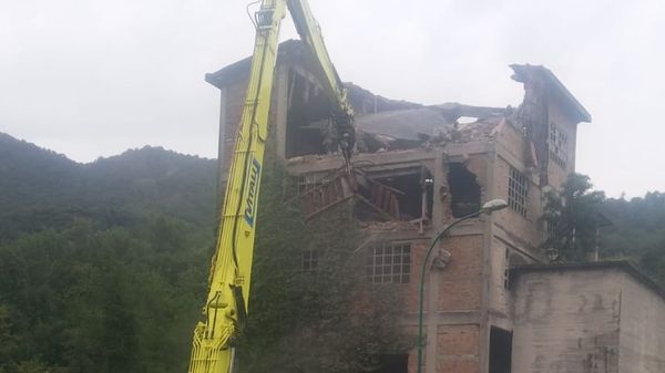 Al via l’abbattimento della vecchia fornace di Cisano: «Troppo vicina al torrente». Se ne va un pezzo di storia industriale del paese.