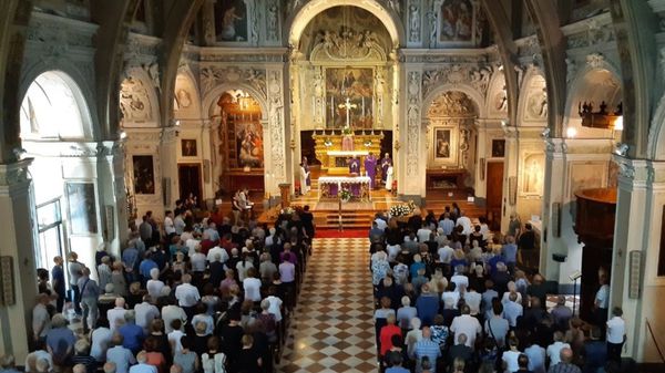 I funerali di Felicita Carminati e del figlio Thomas Arrigoni nella chiesa parrocchiale di Terno d’Isola.