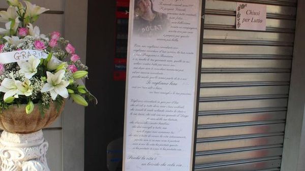 Gli amici che frequentavano il locale di Giovy e Gabriella hanno posato davanti al bar una bacheca e un cesto di fiori. Sulla bacheca hanno scritto: «Ehi Giovy! Ti ricordi venerdì sera? Sì, proprio venerdì, eravamo tutti contenti, felici».
