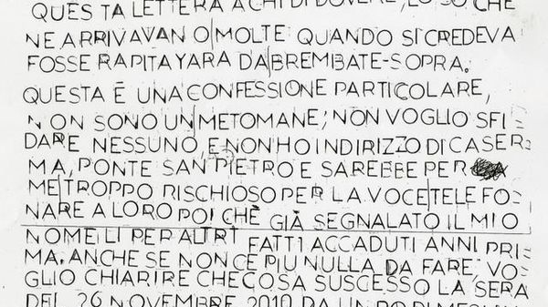 È all'esame dei Ris di Parma la lettera anonima arrivata alla redazione de L'Eco di Bergamo. Un foglio A3 scritto su entrambe le facciate con l'aiuto di un normografo, sgrammaticato e giunto al giornale lunedì dal centro meccanografico posta di Genova.