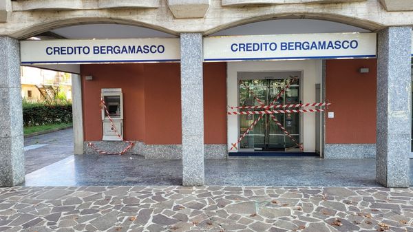 Furto. Quattro malviventi, ripresi dalle telecamere, hanno fatto razzia del denaro presente nel bancomat del Credito Bergamasco in viale Battisti.