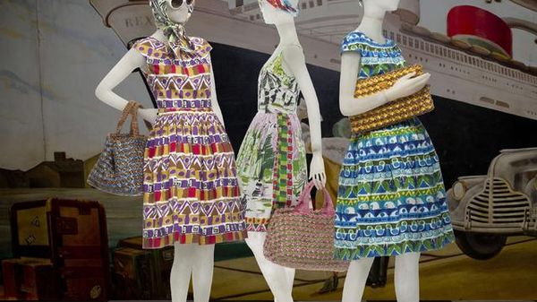 Una capsule di abiti e accessori raccontata attraverso l'utilizzo di stampe dai colori sgargianti e richiami vintage, come raccolte durante un viaggio. È la linea Le Voyager di Prada.