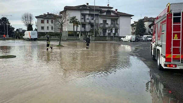 L’INTERVENTO. Verso le 15 del 1° gennaio si è allagato il piazzale antistante allo stadio.