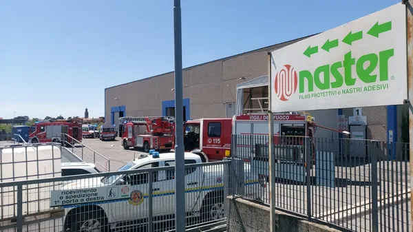 Lavori per riparare il tetto in una ditta di nastri adesivi dopo la grandinata: due operai intossicati - Foto e video