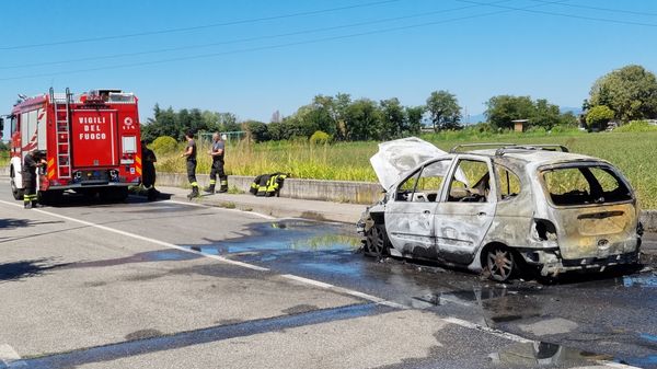 Via Garibaldi Attimi di paura nella mattinata di domenica 31 luglio per un automobilista: è riuscito a fermarsi e scendere prima che la macchina venisse avvolta dalle fiamme.