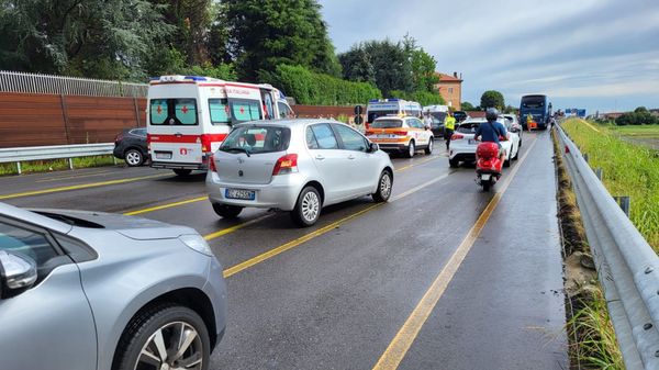 L’incidente Carambola tra due auto e un pullman con a bordo una comitiva di ragazzi del Cremonese in visita al parco delle Cornelle. Tutti illesi i bambini.