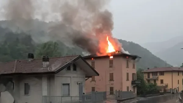 CON IL MALTEMPO. Un fulmine è caduto su un’abitazione in via Brancilione, a Sant’Omobono, domenica 6 luglio intorno alle 19: in fiamme un tetto.