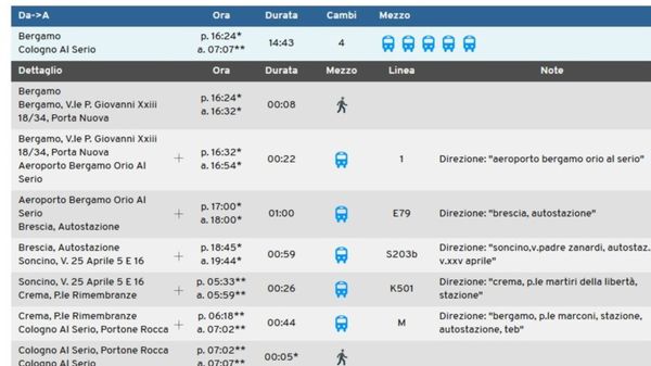Una lettrice ci ha segnalato una situazione curiosa sul nuovo sito della Bergamo Trasporti: inserendo la tratta Bergamo-Cologno tra le opzioni ce n’è una veramente improponibile. Guarda.