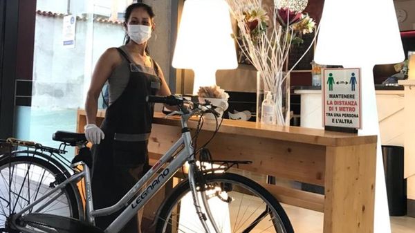Aleyda Fonseca raggiunge il capoluogo, dove gestisce un bar in centro, in sella alla sua due ruote.