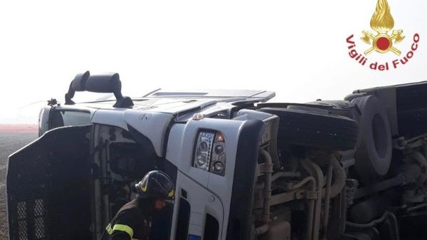 Un camion si è ribaltato intorno alle 11 di martedì 18 febbraio a Ghisalba.