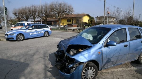Lo schianto alle 12,45 di mercoledì 19 febbraio: il piccolo è stato trasferito al «Papa Giovanni» in elicottero. Fortunatamente le sue condizioni sono buone: il bebè era legato e ancorato nella sua culla. Non avrebbe subito traumi.